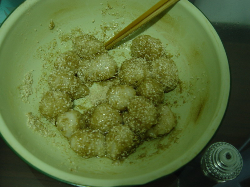 今天是冬至,福建当地的习俗是搓丸(福州称米时),也称搓圆。用糯米搓成丸子,裹上芝麻、糖、豆粉等。客居八闽大地,自当入乡随俗。没见过正宗的,不知我我搓的米时如何。据说,福州搓[米时]的时候,要全家人围坐在圆桌周围,边搓[米时],边唱歌,如:“搓[米时]之搓搓,依奶疼依哥,依哥讨依嫂,依弟单身哥……”。“依”类似广东话的“阿”。