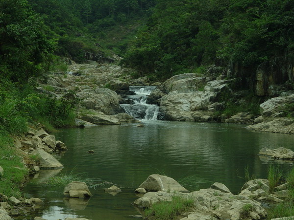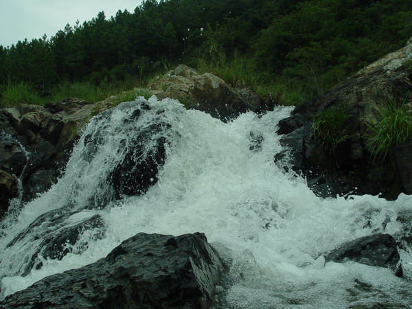 瀑布标准照 我们一行7人前往同安虎穴附近溯溪,源头就在20米开外,然而陡峭和湿滑的岩壁阻止了我们的前行。 本着不留遗憾的念头,我脚踏溯溪鞋往高处的源头爬去。被泉水冲刷的岩壁湿滑且陡峭,两侧的深潭神秘且阴冷。 当脚底一滑而人贴在岩壁的时候,往上挣扎终战胜了恐慌,进退两难之际,进战胜了退。 溯溪是对自我的挑战,躺在岩壁上看云彩是一种享受,把脚泡在清溪里是一种心情的涤荡,看水流喷薄地倾泻是一种水墨的技法,登顶后的兴奋与后怕是长长的惆怅。 温存的小溪之源头必定隐藏着威严……