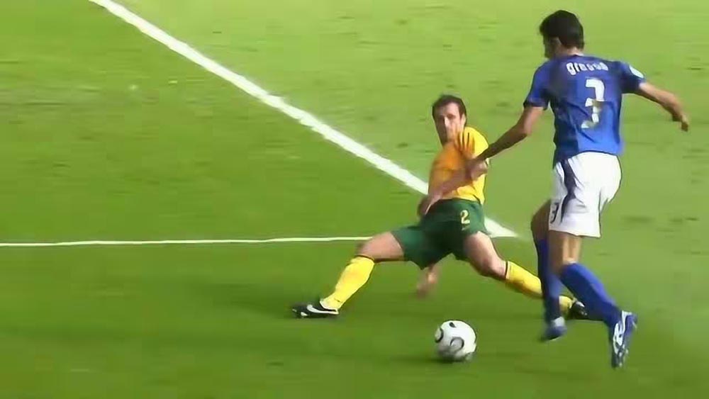 意大利对澳大利亚,下半场加时最后1秒,格罗索左路突破,澳大利亚尼尔铲球,格罗索以一个假摔骗得一个点球。黄健翔此刻声嘶力竭起来,托蒂接着点杀澳大利亚,黄嘶哑加倍。黄健翔又制造经典解说了,比段暄和刘建宏的“鲁本 鲁本 鲁本 又是鲁本”之类的更真实。我支持意大利,黄的嘶哑成了我激动的催化剂,而且黄赛后敢于直言不喜欢澳大利亚,在装B流行的这个年代更是难得。希丁克此刻成了我眼中的韩国队,成了黄眼中阻挡中国的