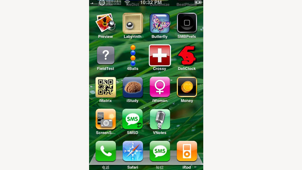 IPHONE的第三方软件爱好者开发出了VNOTES,已经可以实现录音了。同时,我还下载了几个不错的软件,SMSD实现了短信的转发功能;IMATIRX居然实现了在IPHONE上识别二维码的功能。