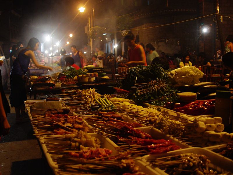 晚上吃烧烤,这条街的味道和其实相比南宁的中山路还是差了些,但还是可以小酌一杯的。苗族老太过来乞讨,给完钱后,说:好人好报,上北京。大致这意思。