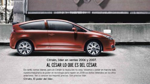 该广告的标题是:“雪铁龙,2006和2007年度销售领袖。凯撒风范尽现!”
