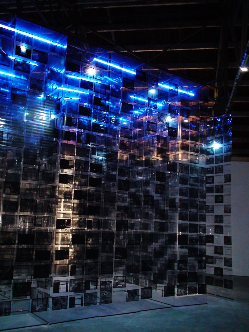 起了个早,奔莫干山50号而去。门口停了辆苏州金龙的大巴,这里俨然成了观光景点。一些有名的无名的画家,一些正常的不正常的艺术。有点意思的是一个胶片迷宫的造型,把元旦一天发生的所有事情浓缩在一幅幅胶片上,拼成巨大的胶片迷宫。冷冷的苏州河边冷冷的艺术,据说昨天台北市长刚来逛过…