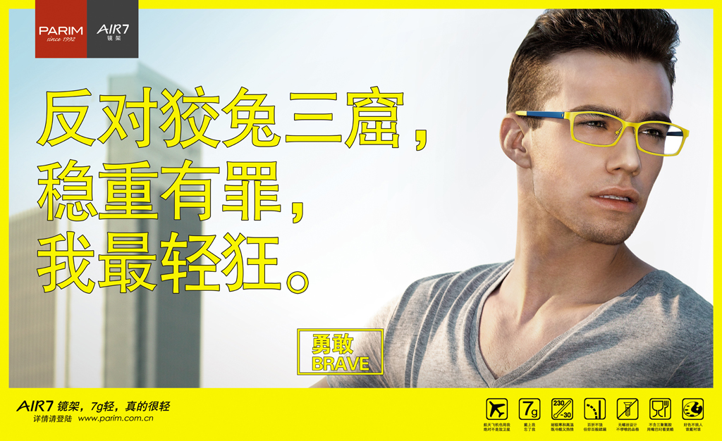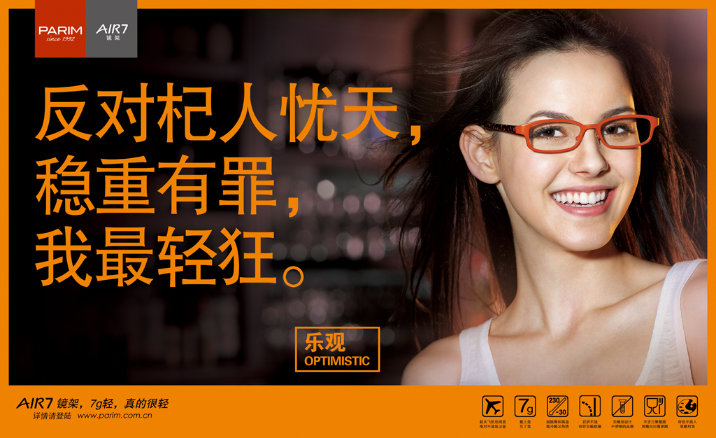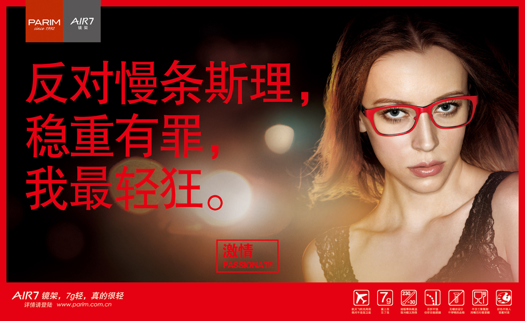 现在,派利蒙AIR7,一款革命性的超轻镜架,要召唤起他们的“轻狂”! 要与这群年轻人一起,发起一场“轻狂”革命!