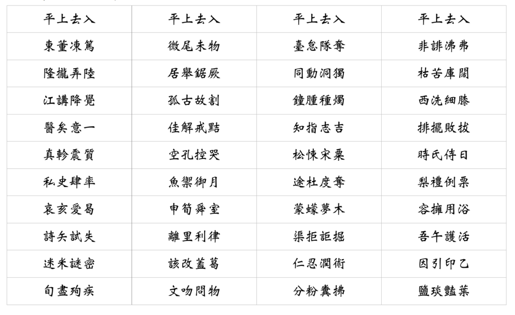 學詩之第一步當重聲韻,之中尤以練習四聲為最要。四聲者何?平上去入是也。
