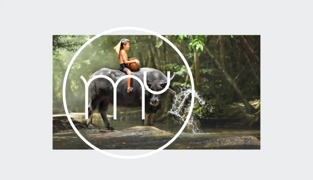 方案:提案当天我在住院,但不影响我带着针头去开会,结果自然是年轻万岁。我们用MU字母构图,形成一只充满朝气的小牛,用蓝绿色为主色,增加品牌的清新的时尚感。
