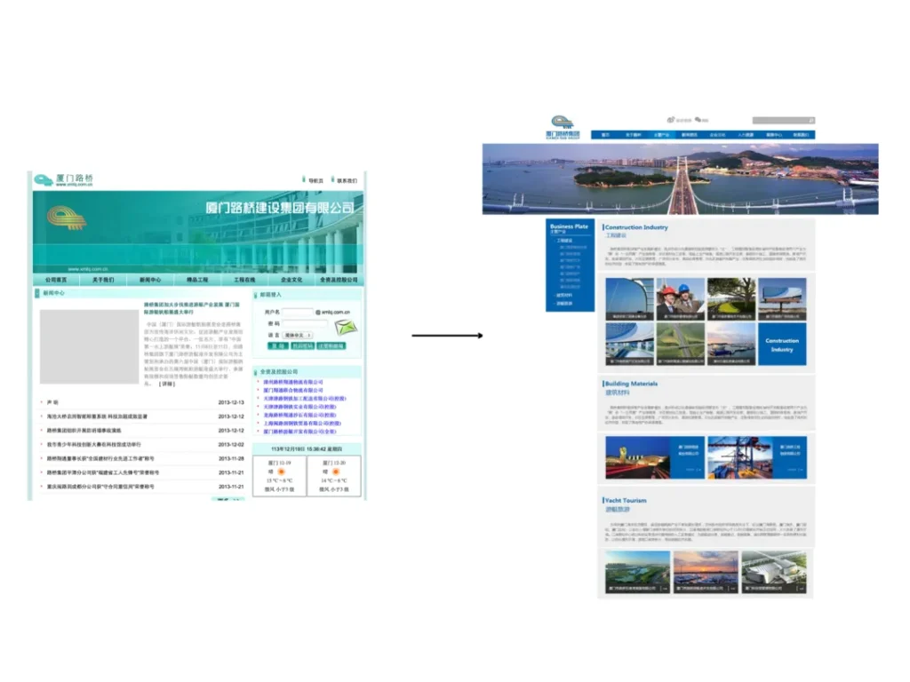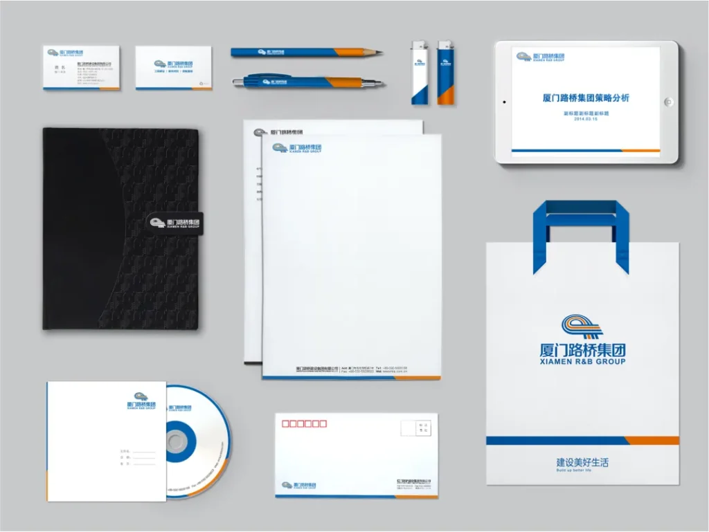方案:为体现产业转型,我们将“修路架桥“的使命改为“建设美好生活”,并将原来几十家公司归为三大业务板块–工程建设、建筑材料和游艇旅游。品牌识别主色选取活力橙和卓越蓝,营造品牌的专业感。