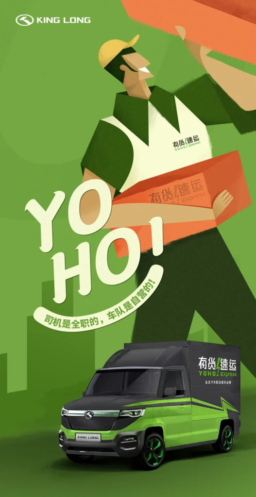 有货谐音YOHO,而YOHO的发音,更有一种“收到!马上办到!”的活力感。在品牌视觉上,我们用绿色的闪电,作为有货速运的记忆符号,凸显速度感和绿色生态。