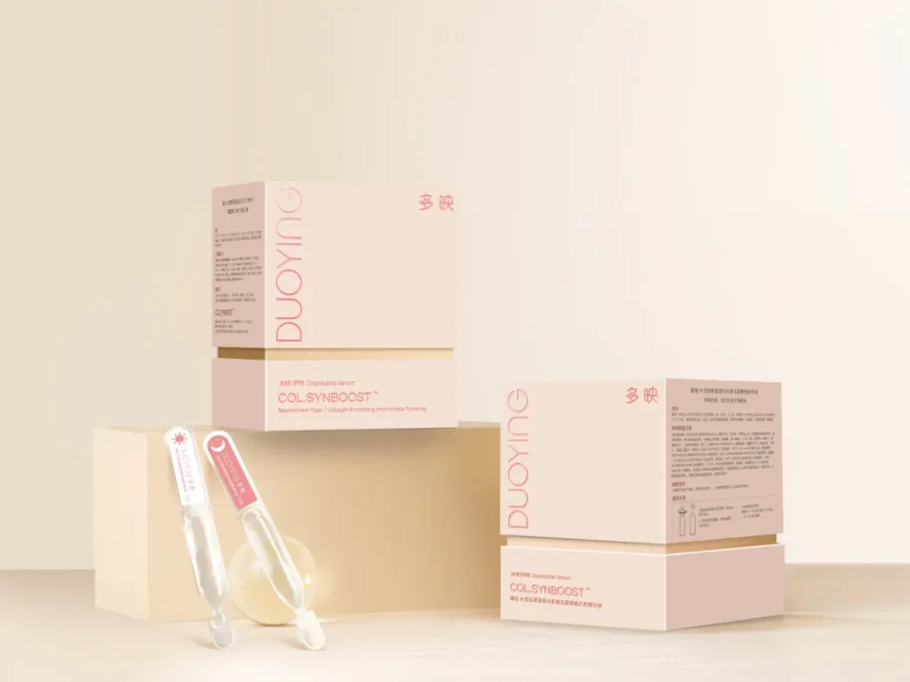 多映也有自己的重组胶原蛋白专研技术,我们把它叫做COL. SYNBOOST,分别代表Collagen Synthesizer胶原新生和Collagen Booster胶原倍增。既促进肌底胶原蛋白新生,又放大胶原蛋白合成速率。
