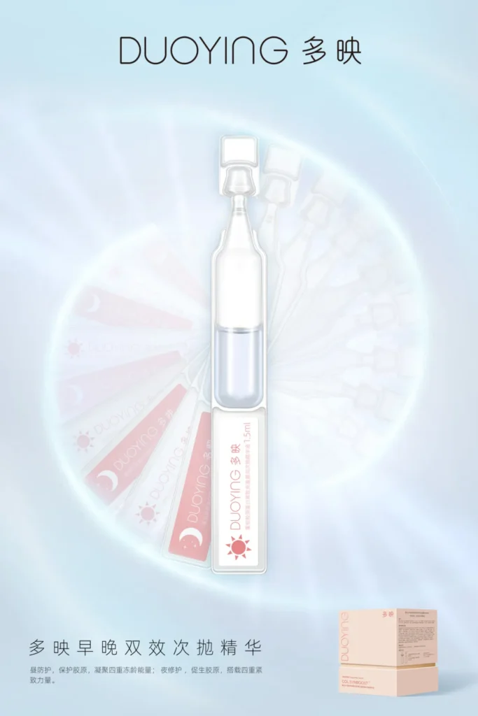 为保湿面膜、紧致面膜、早晚次抛精华液设计内外包装,充分展现品牌色。