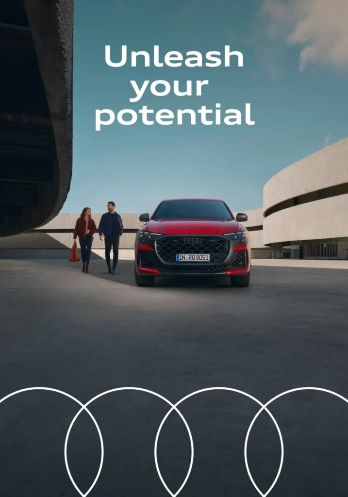 不仅如此,Rings图形标在Layout中的位置,也是有了很大的摆放空间,甚至可以只出现局部,并不像传统VI识别那样古板。当然,这种灵活的排版方式,也和奥迪Rings Logo有关,四个圈是平衡的视觉,比一个圈的LOGO更容易灵活操作。